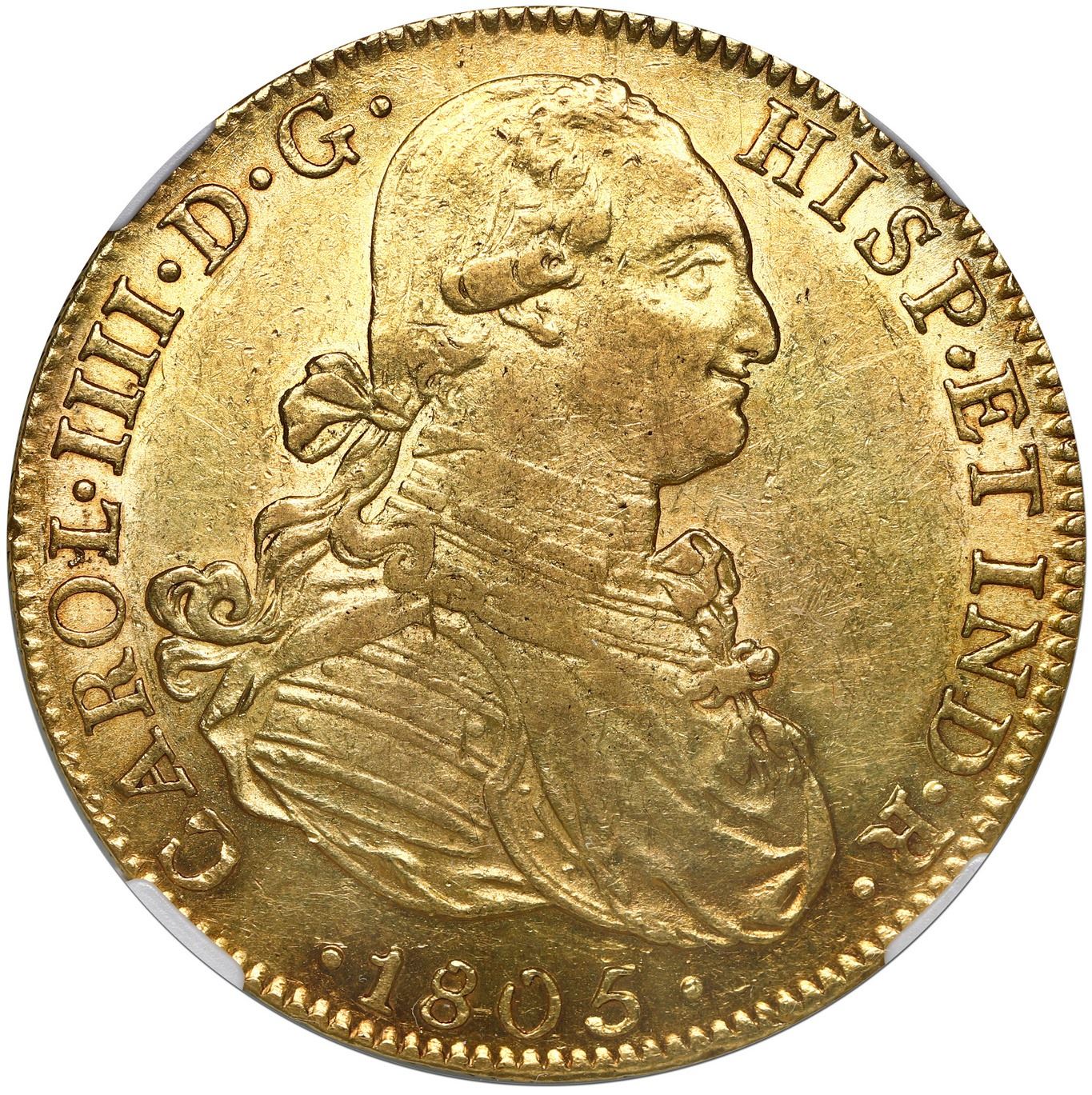 Mexico City, Mexico, gold bust 8 escudos, Charles IV, 1805 TH, NGC AU 58.