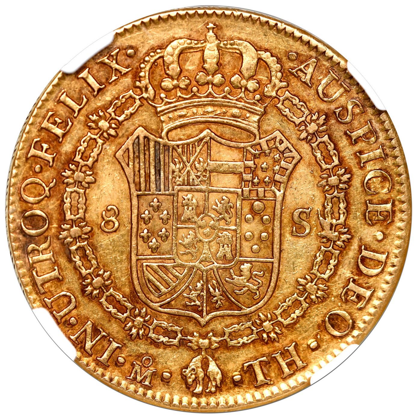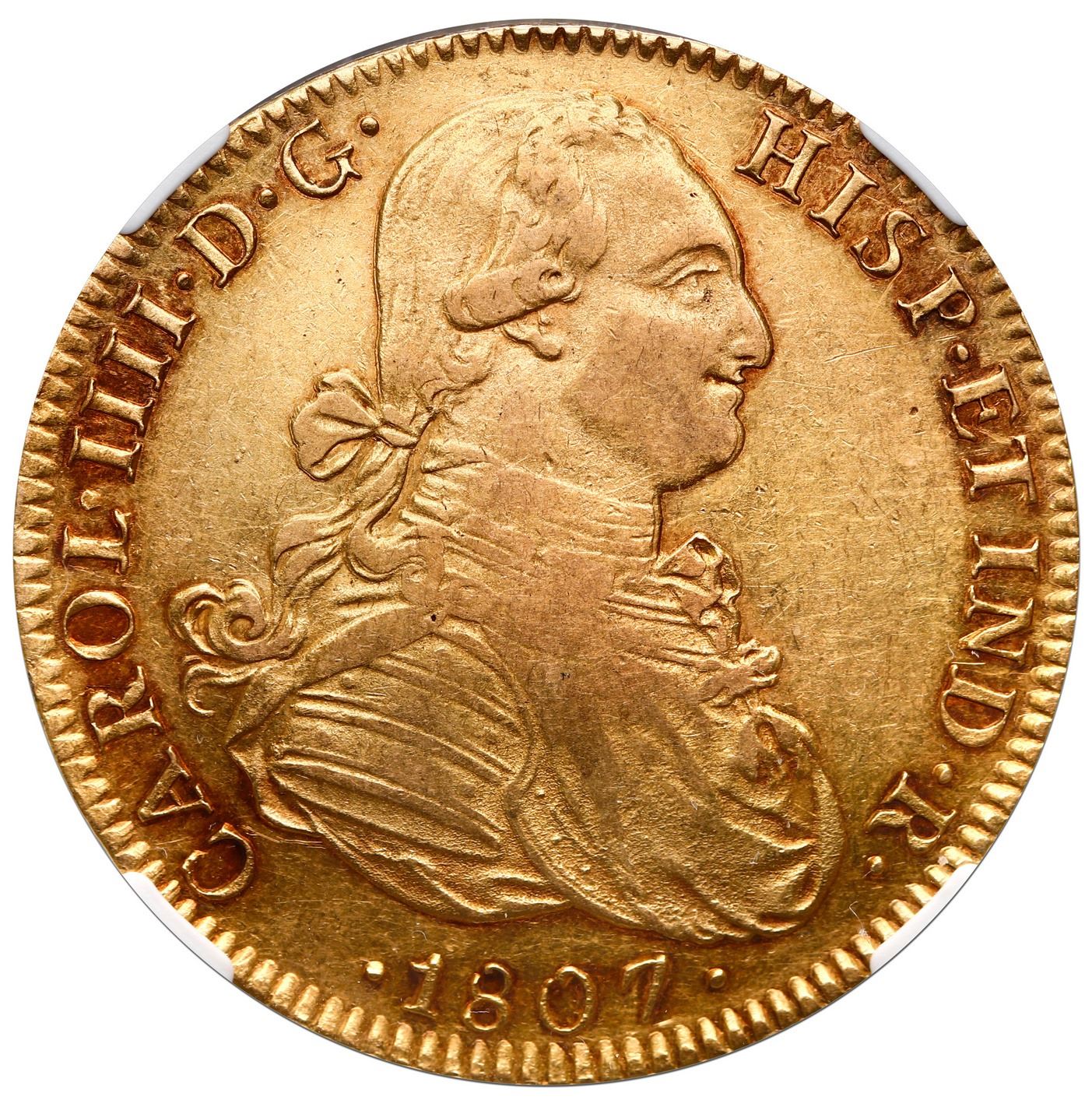 Mexico City, Mexico, gold bust 8 escudos, Charles IV, 1807 TH, NGC AU 55.