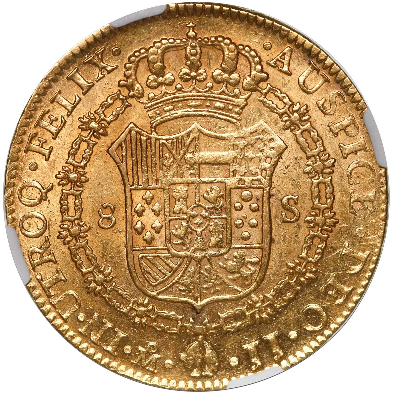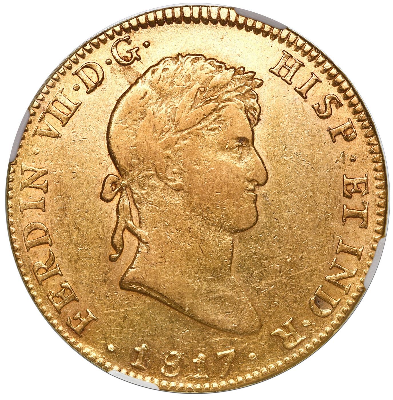 Mexico City, Mexico, gold bust 8 escudos, Ferdinand VII, 1817 JJ, NGC AU 58.