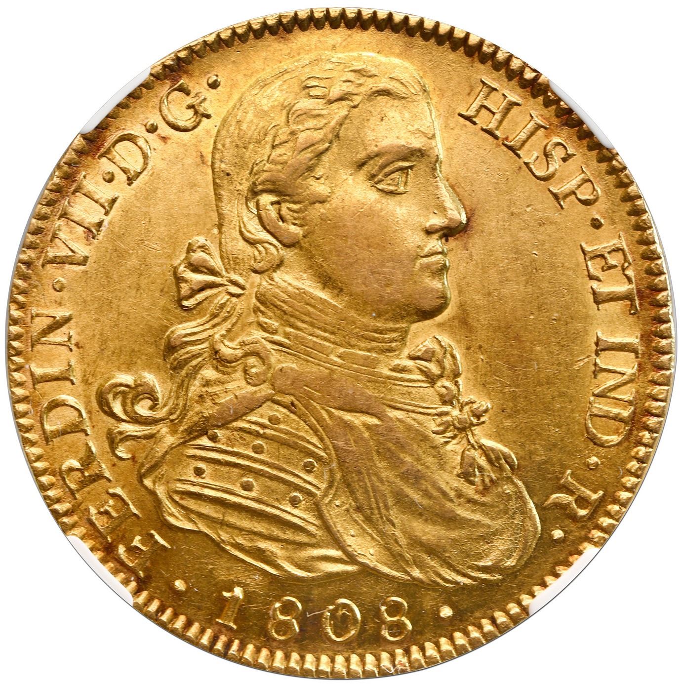 Mexico City, Mexico, gold bust 8 escudos, Ferdinand VII transitional ( armored bust ), 1808 TH, NGC