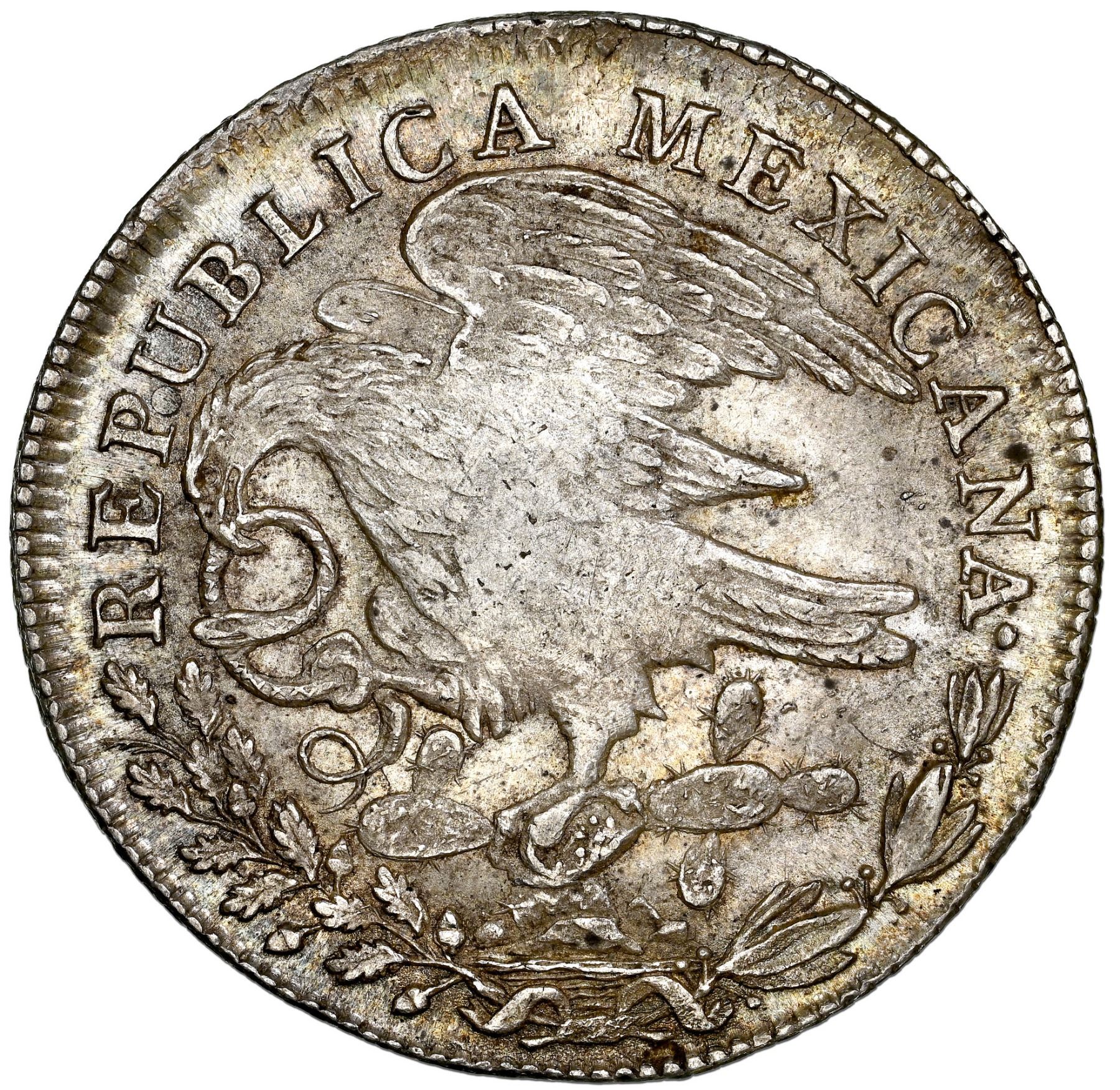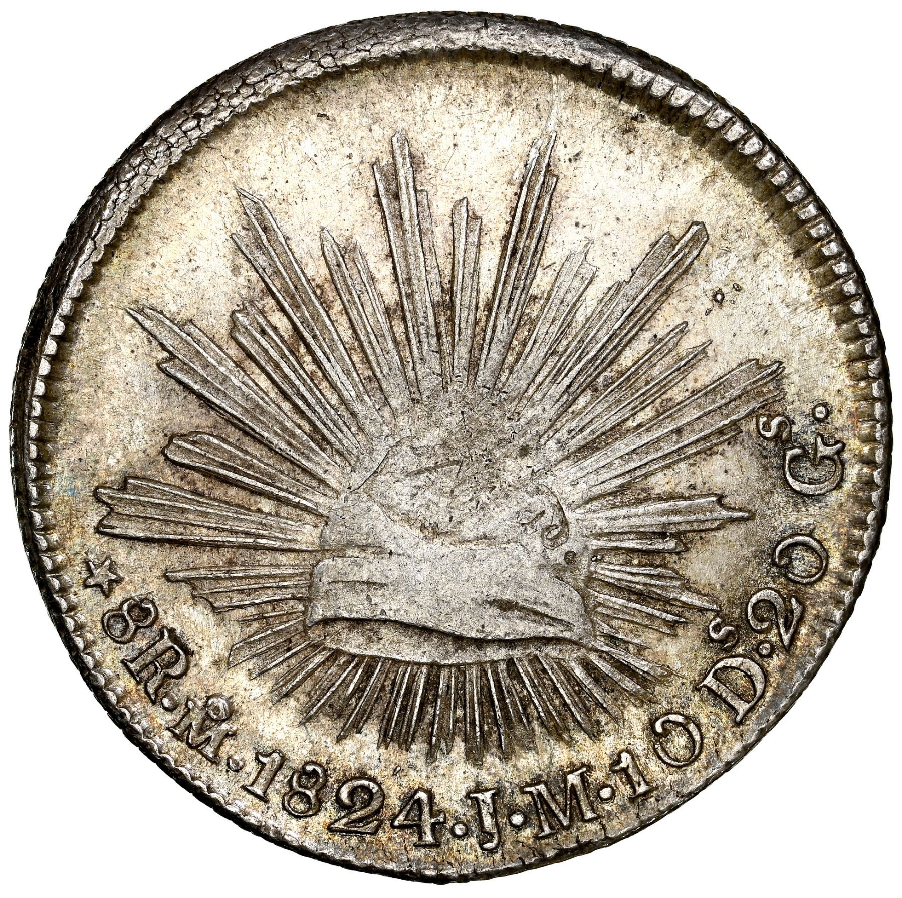 Mexico City, Mexico,  hookneck  8 reales, 1824 JM, NGC MS 62.