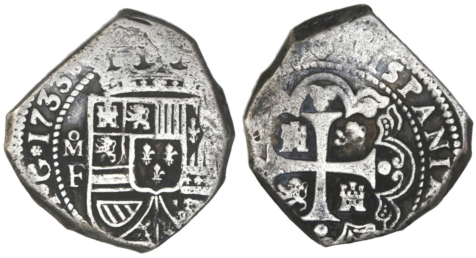 Mexico City, Mexico, klippe 8 reales, 1733F, cob planchet.