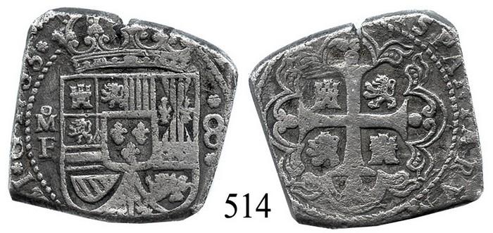 Mexico City, Mexico, klippe 8 reales, 1733F, scarce.