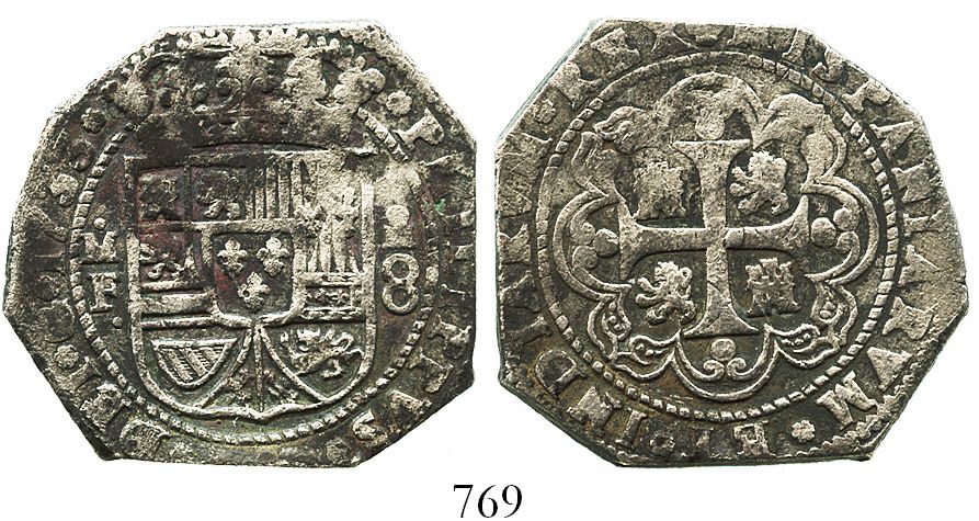 Mexico City, Mexico, klippe 8 reales, 1733MF. S-M28; KM-48; CT-768. 26.5 grams. Well centered on a nicely octagonal flan with full crown and shield and cross, much legend, minimal corrosion but lots of dark patches. Recovered from: Rooswijk, sunk in 1739 southeast of England