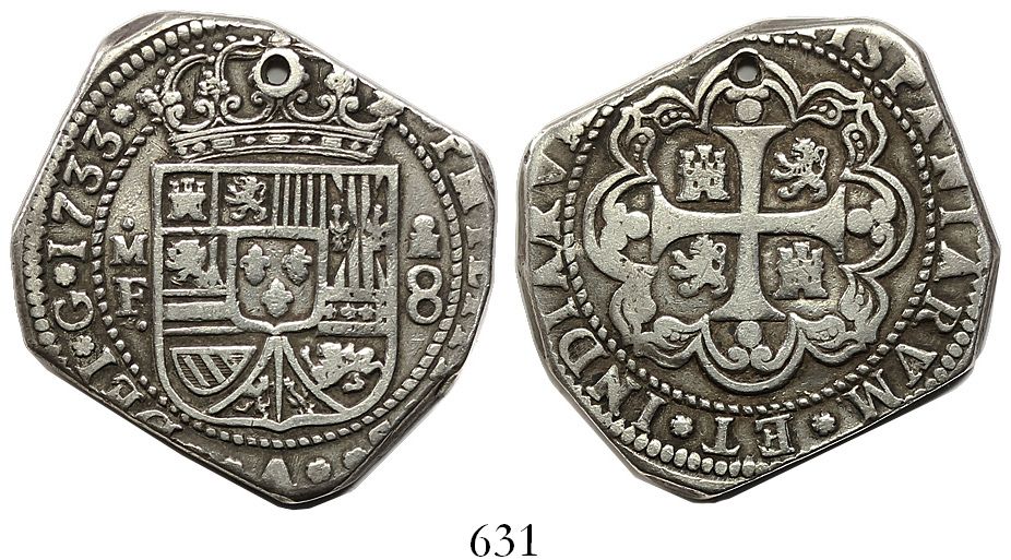 Mexico City, Mexico, klippe 8 reales, 1733MF.