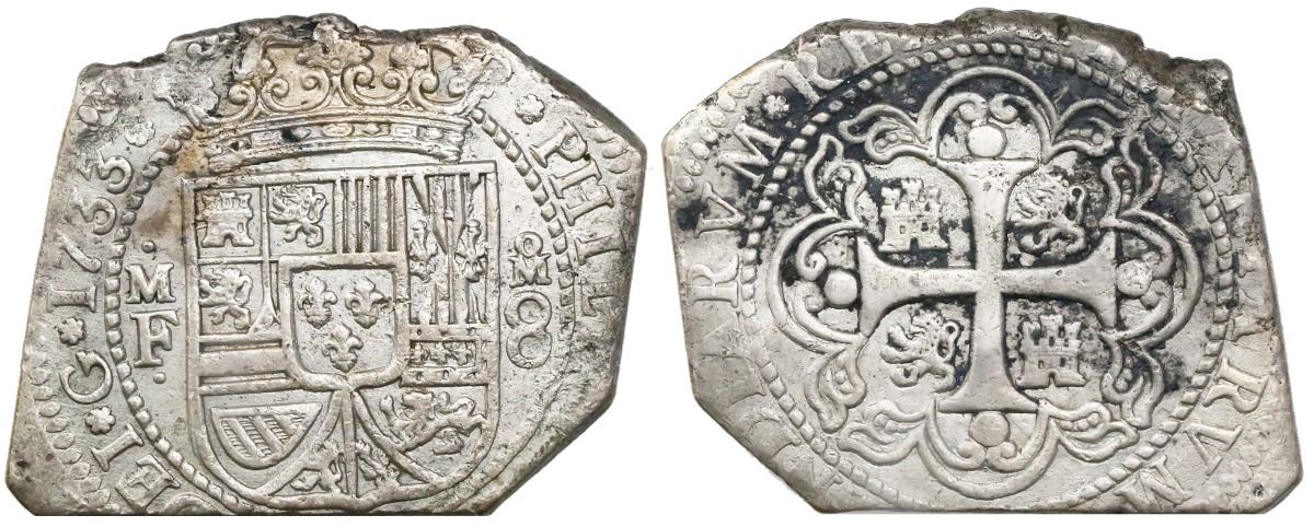 Mexico City, Mexico, klippe 8 reales, 1733MF.