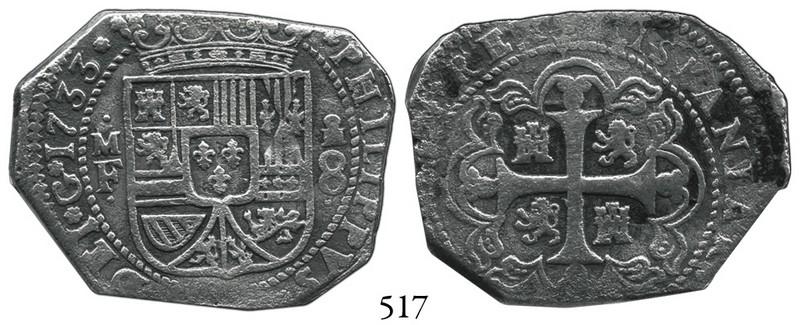 Mexico City, Mexico, klippe 8 reales, 1733MF.