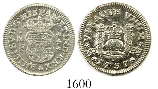 Mexico City, Mexico, pillar 1/2 real, Philip V, 1737MF.