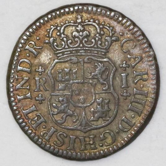 Mexico City, Mexico, pillar 1 real, Charles III, 1766M.