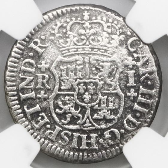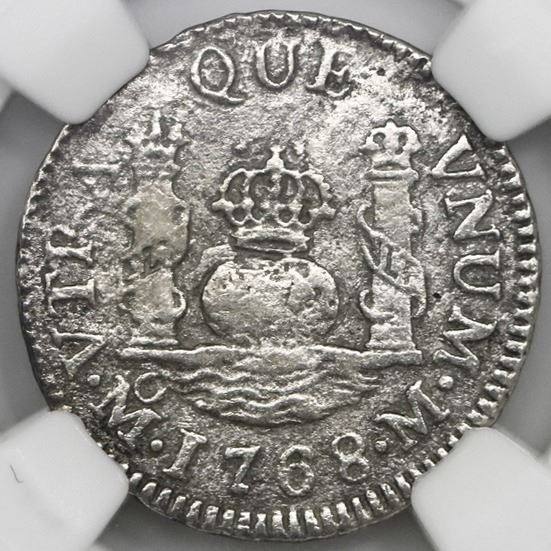 Mexico City, Mexico, pillar 1 real, Charles III, 1768M, broken o in mintmark, NGC genuine / El Cazad