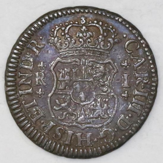 Mexico City, Mexico, pillar 1 real, Charles III, 1769M.