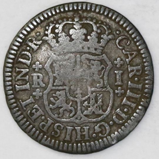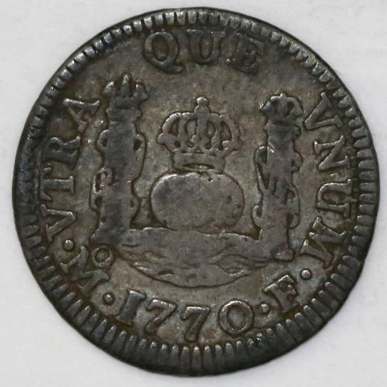 Mexico City, Mexico, pillar 1 real, Charles III, 1770F, rare.