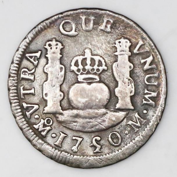 Mexico City, Mexico, pillar 1 real, Ferdinand VI, 1750/49M, very rare overdate, ex-Rudman.
