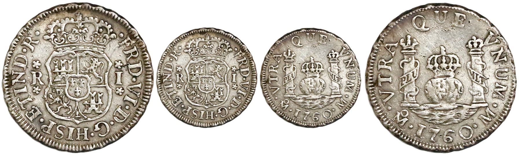 Mexico City, Mexico, pillar 1 real, Ferdinand VI, 1760M, rare.