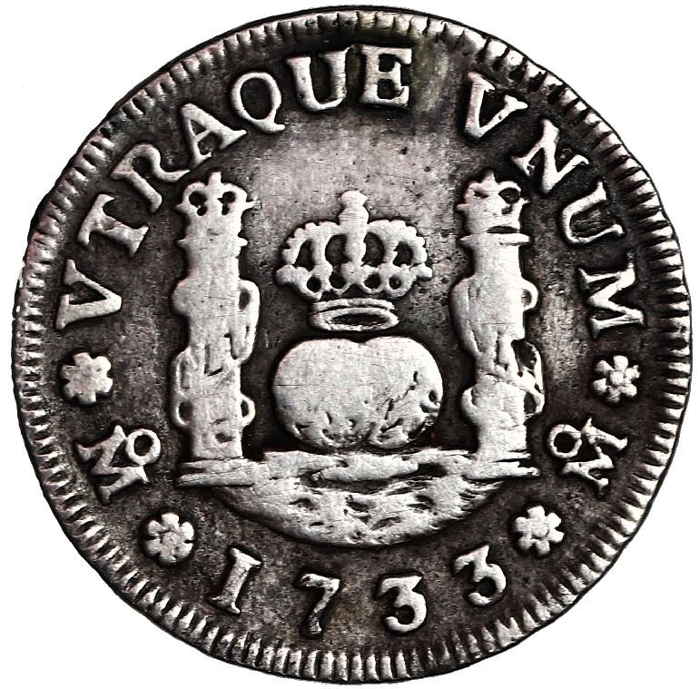 Mexico City, Mexico, pillar 1 real, Philip V, 1733 MF.