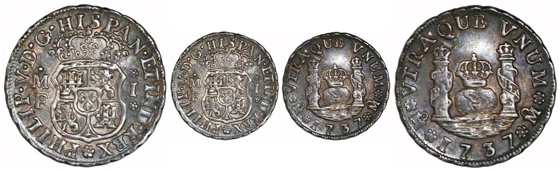 Mexico City, Mexico, pillar 1 real, Philip V, 1737MF.
