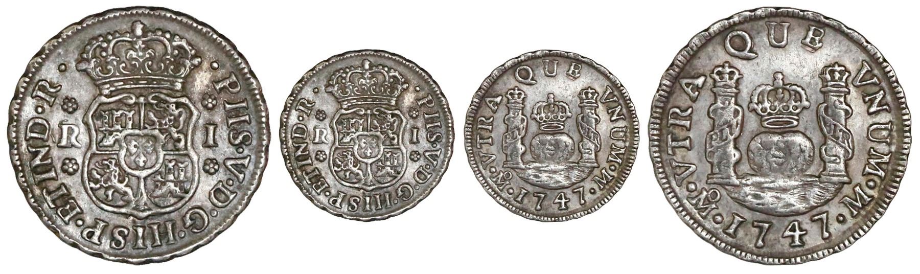 Mexico City, Mexico, pillar 1 real, Philip V, 1747M, rare.