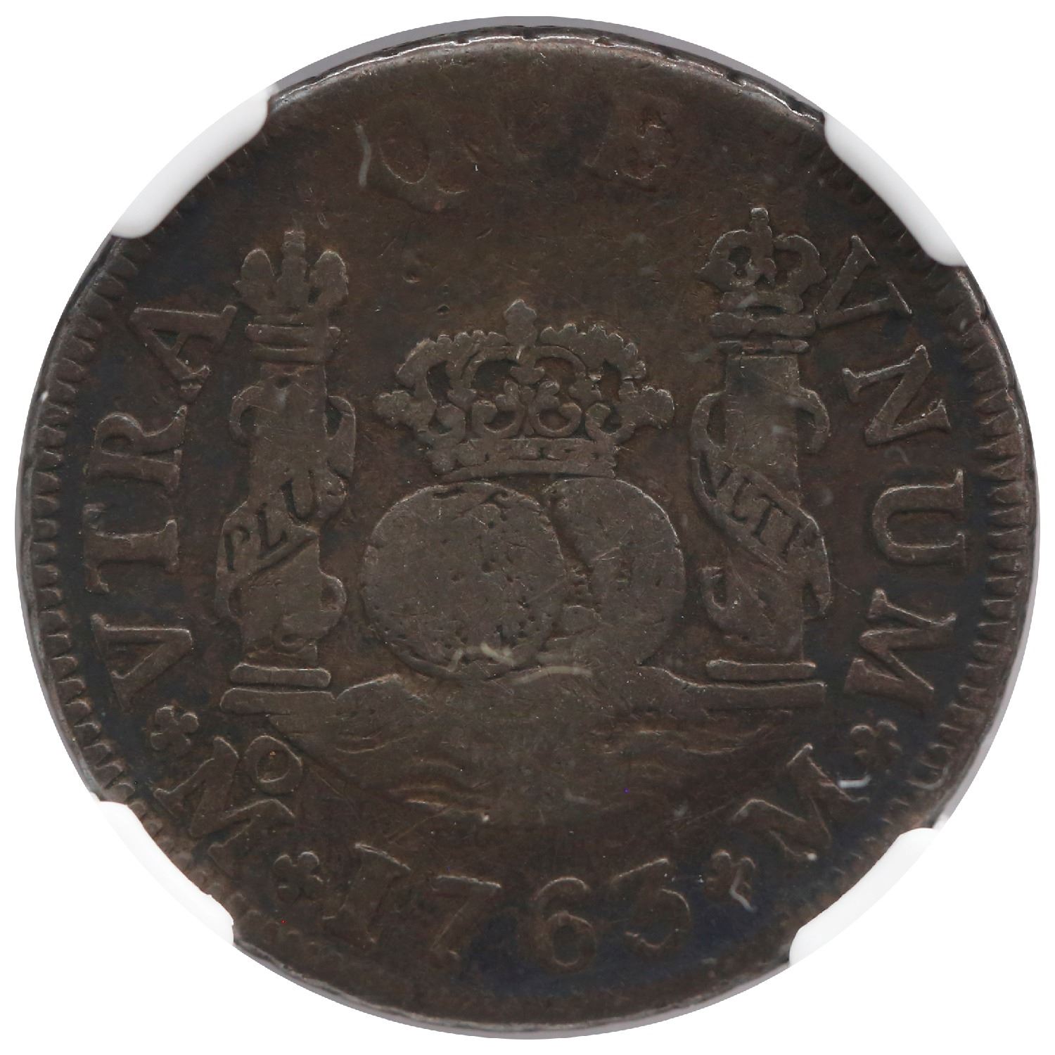 Mexico City, Mexico, pillar 2 reales, Charles III, 1763 M, NGC VF 25.