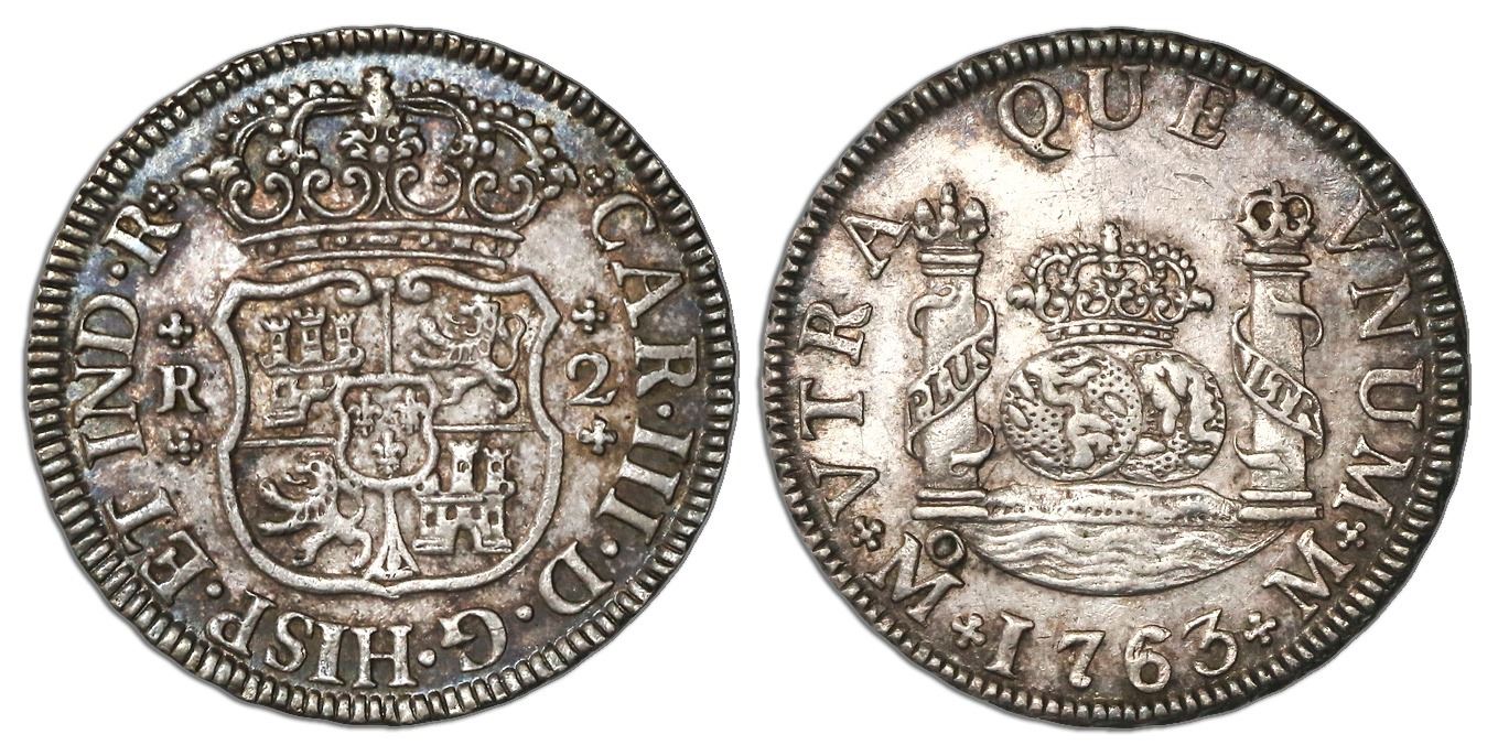 Mexico City, Mexico, pillar 2 reales, Charles III, 1763M.