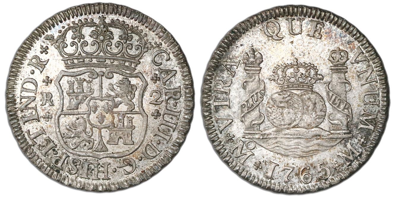 Mexico City, Mexico, pillar 2 reales, Charles III, 1765M.
