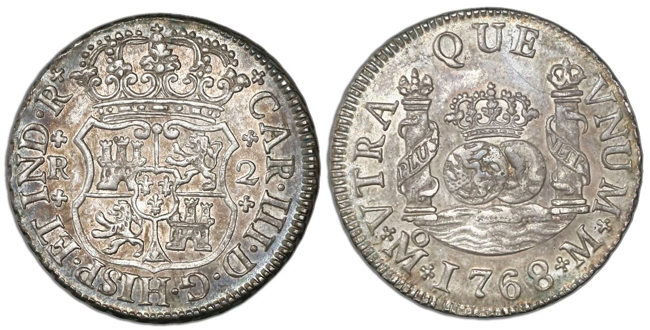 Mexico City, Mexico, pillar 2 reales, Charles III, 1768M.