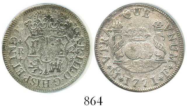 Mexico City, Mexico, pillar 2 reales, Charles III, 1771F, encapsulated ANACS El Cazador / Select.