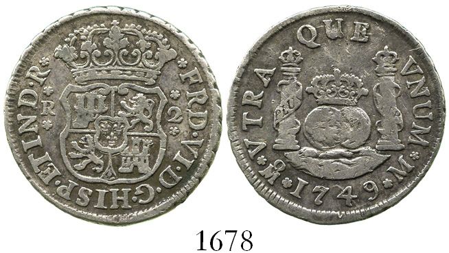 Mexico City, Mexico, pillar 2 reales, Ferdinand VI, 1749M.