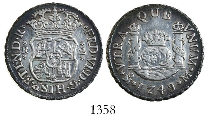 Mexico City, Mexico, pillar 2 reales, Ferdinand VI, 1749M.