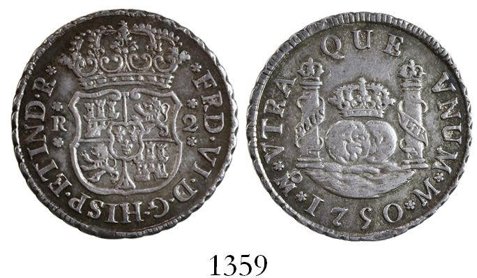 Mexico City, Mexico, pillar 2 reales, Ferdinand VI, 1750M.