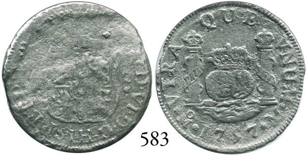 Mexico City, Mexico, pillar 2 reales, Ferdinand VI, 1757M (crowns alike), rare type from this wreck.