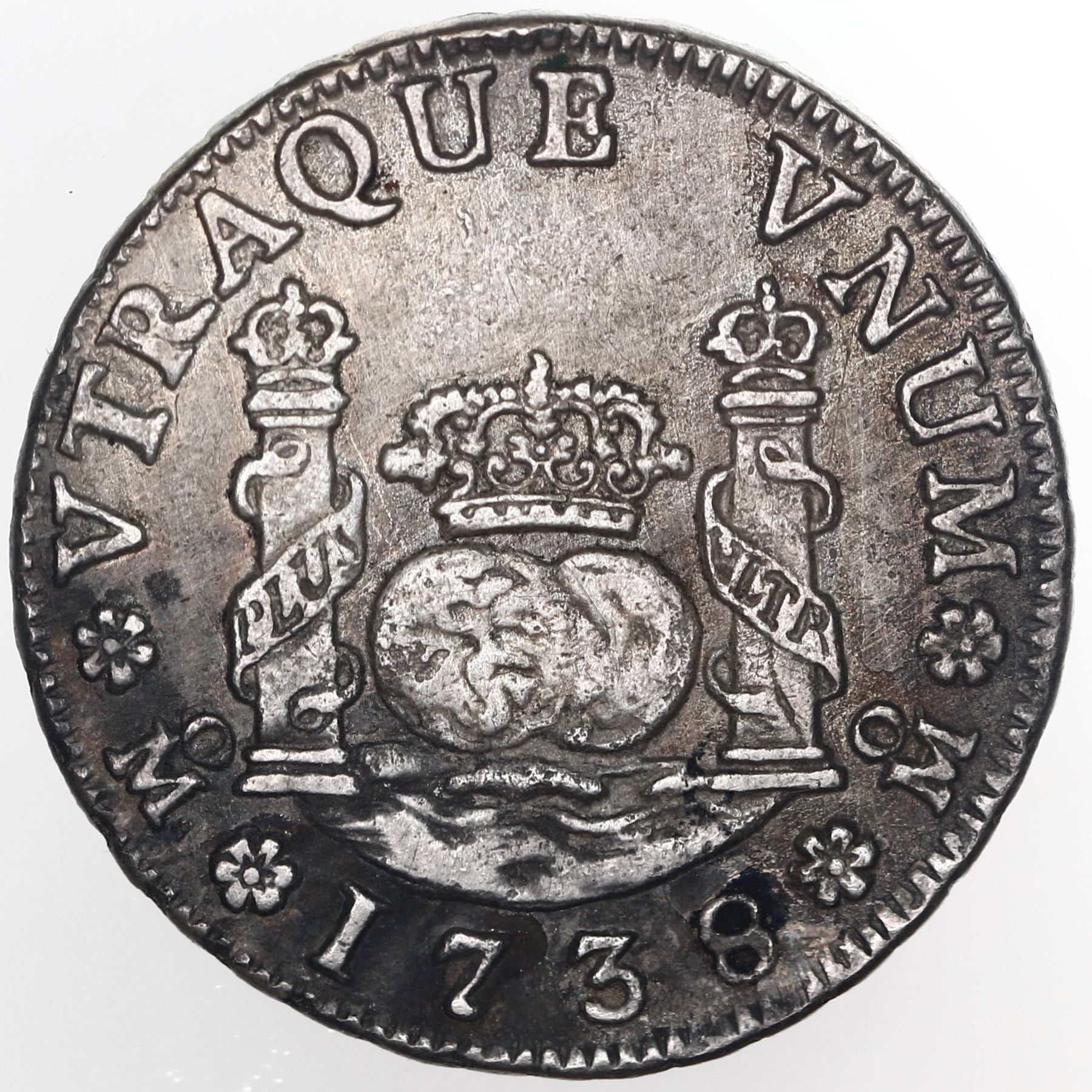 Mexico City, Mexico, pillar 2 reales, Philip V, 1738 MF.