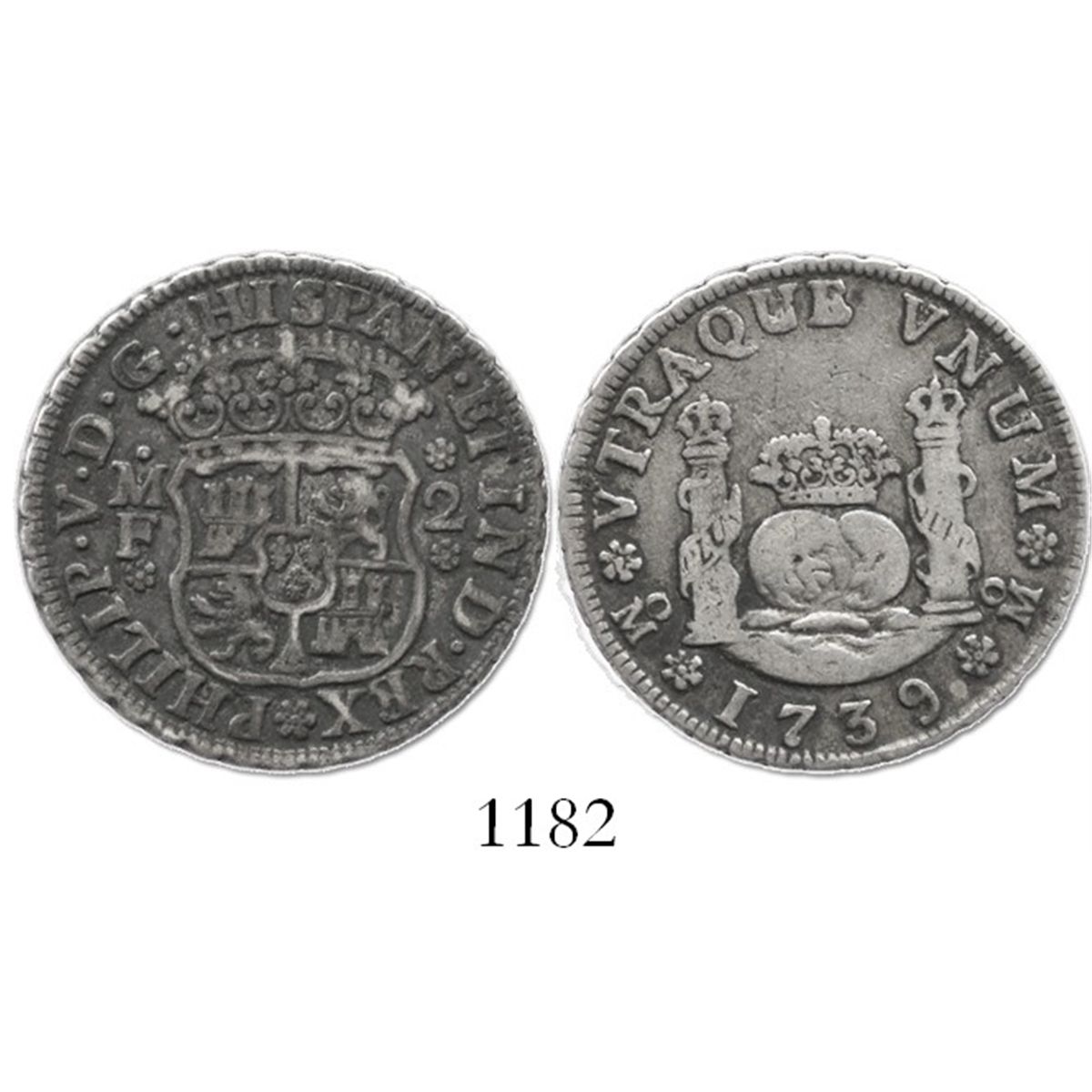 Mexico City, Mexico, pillar 2 reales, Philip V, 1739MF.