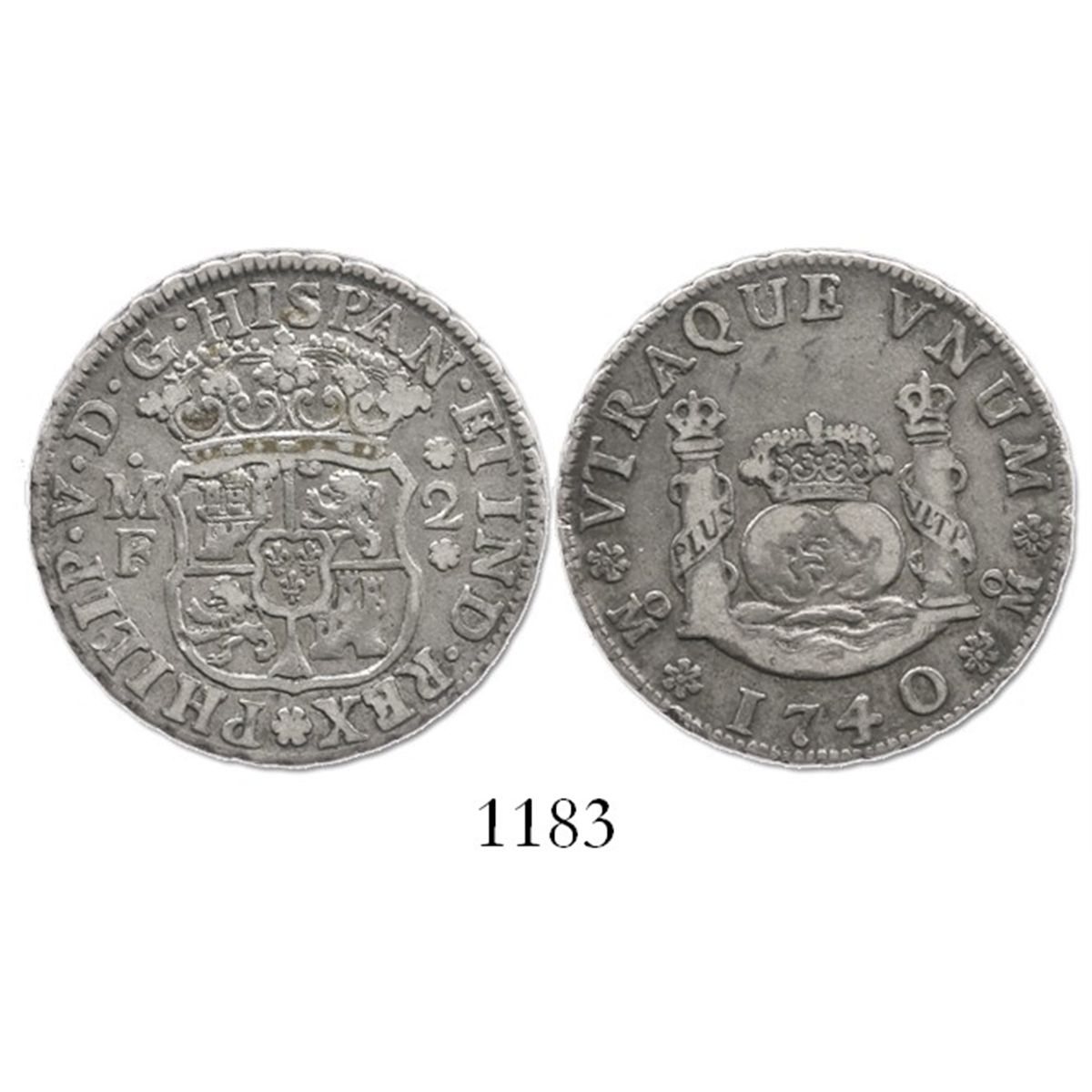 Mexico City, Mexico, pillar 2 reales, Philip V, 1740MF.
