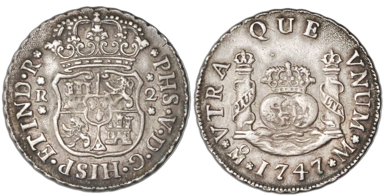 Mexico City, Mexico, pillar 2 reales, Philip V, 1747M.