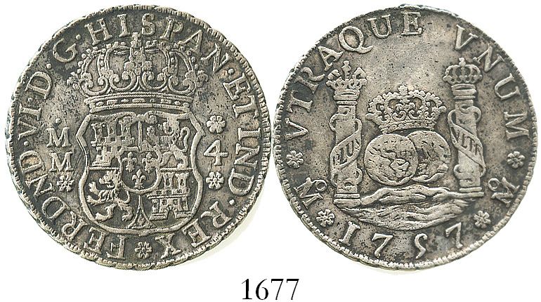 Mexico City, Mexico, pillar 4 reales, Ferdinand VI, 1757MM.