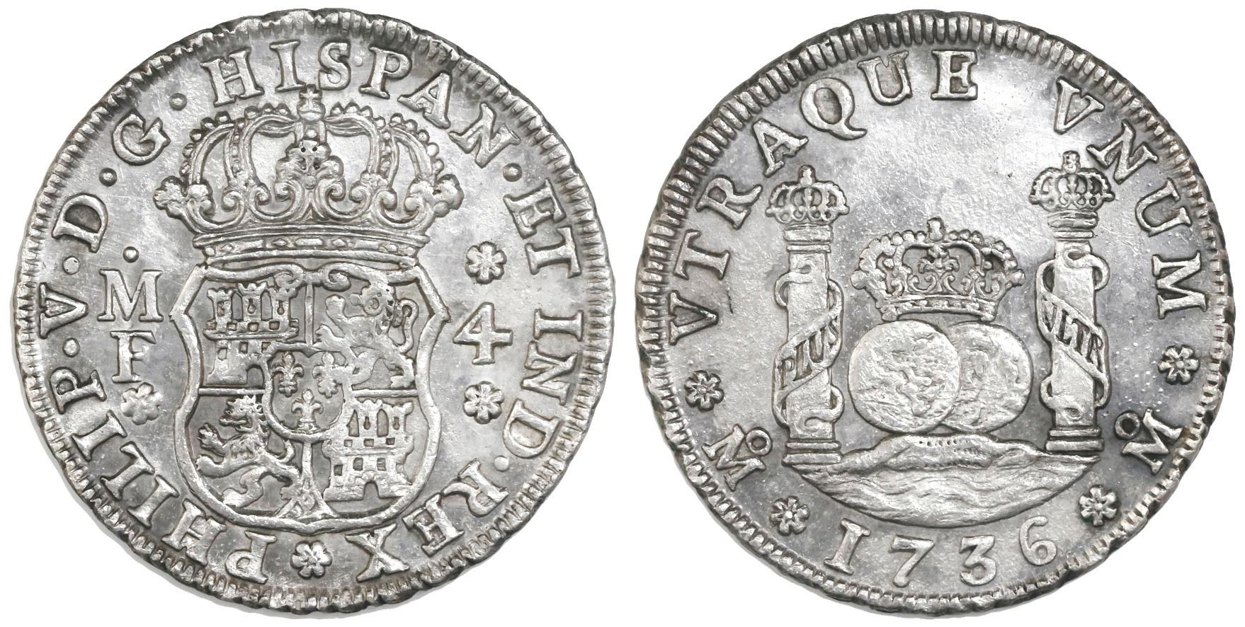 Mexico City, Mexico, pillar 4 reales, Philip V, 1736MF.