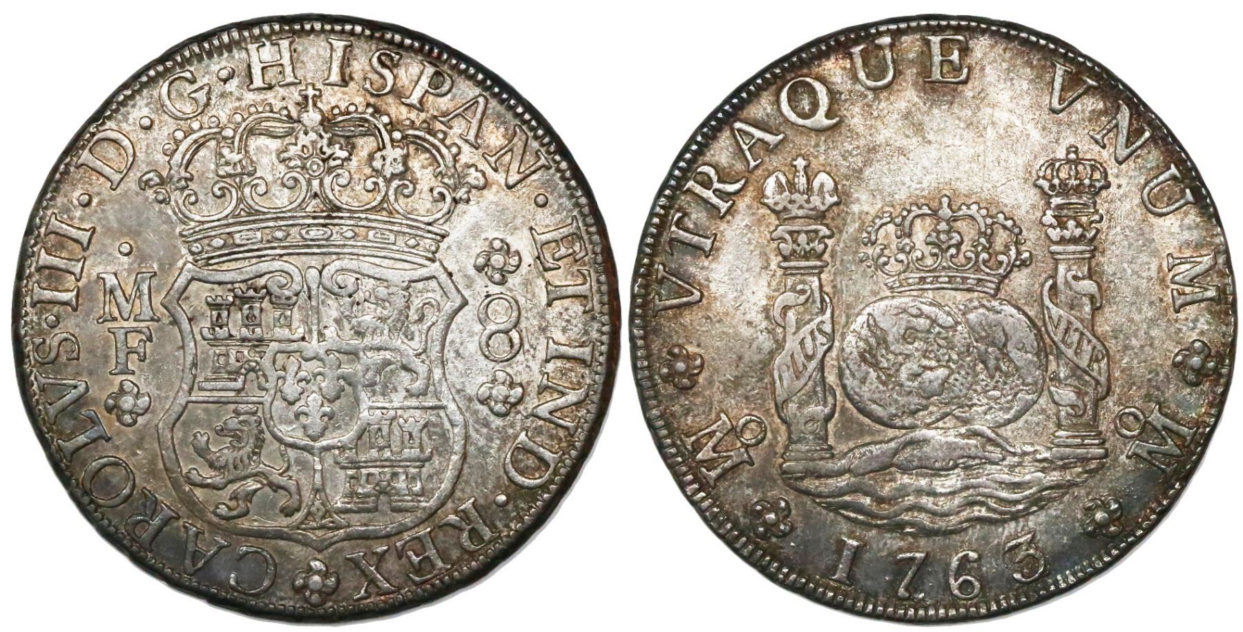Mexico City, Mexico, pillar 8 reales, Charles III, 1763/2MF.