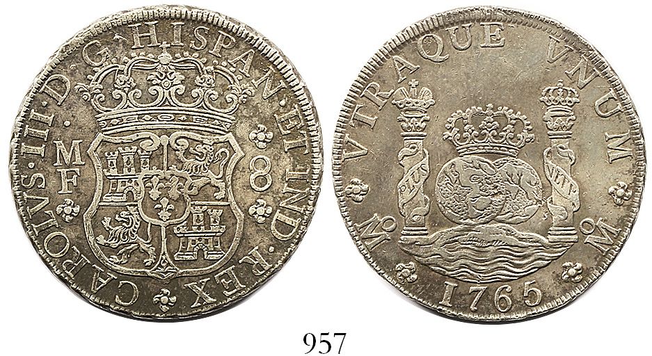 Mexico City, Mexico, pillar 8 reales, Charles III, 1765MF.