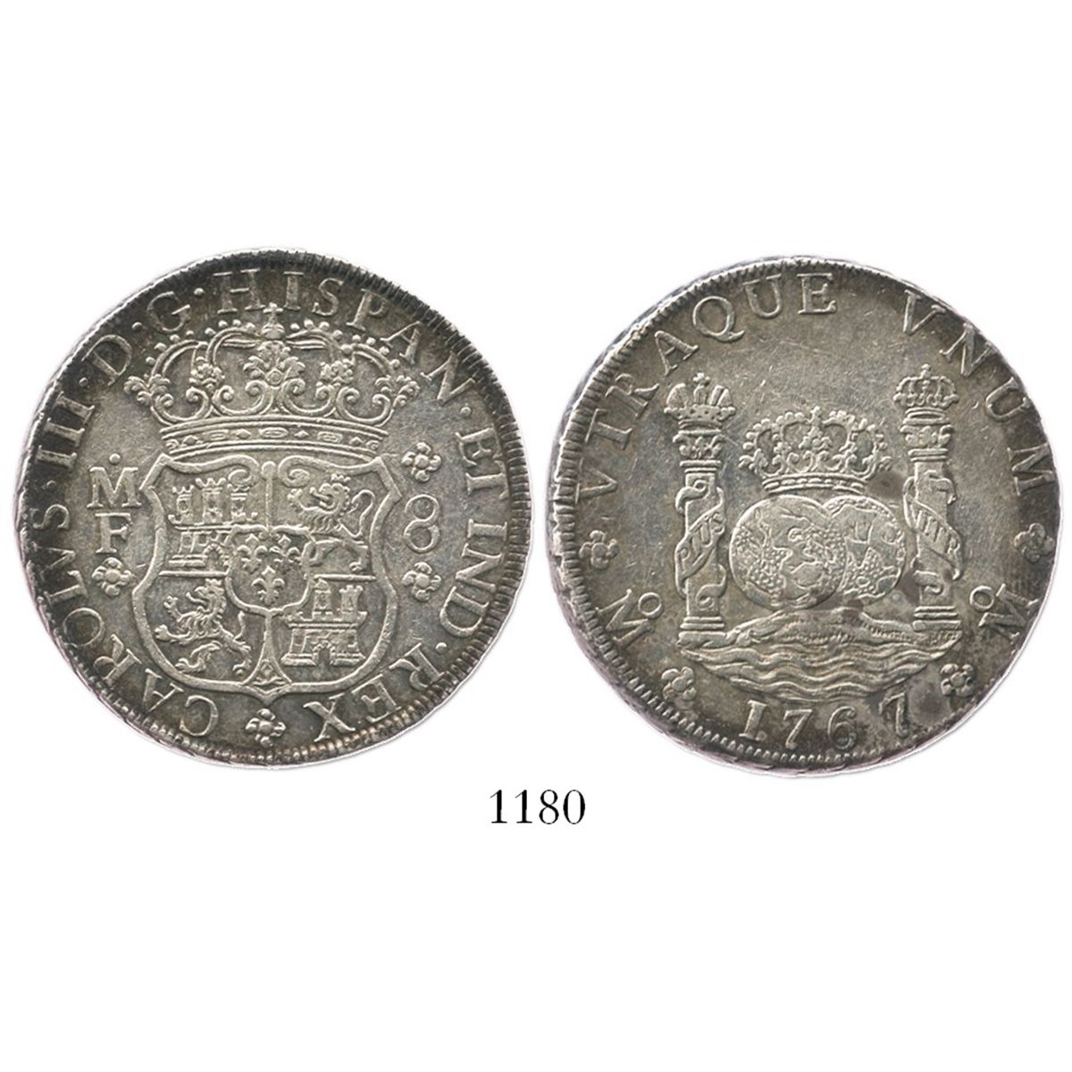Mexico City, Mexico, pillar 8 reales, Charles III, 1767MF.