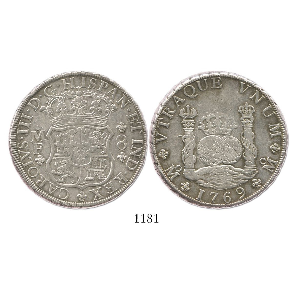 Mexico City, Mexico, pillar 8 reales, Charles III, 1769MF.