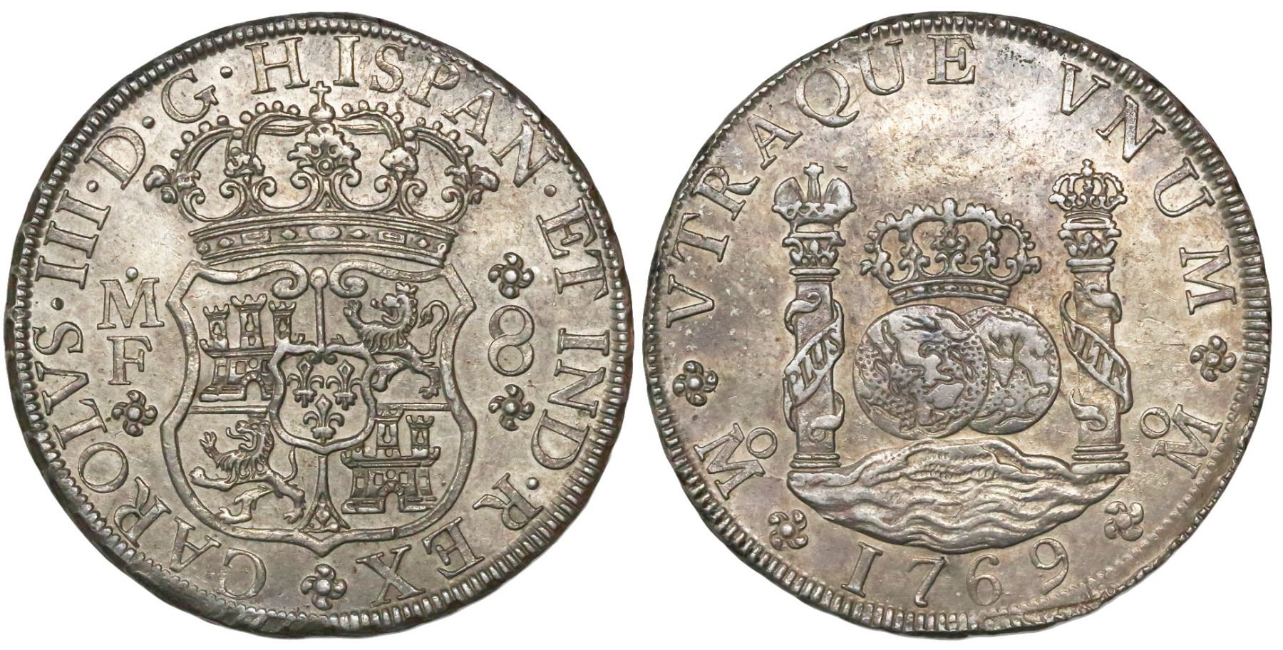 Mexico City, Mexico, pillar 8 reales, Charles III, 1769MF.