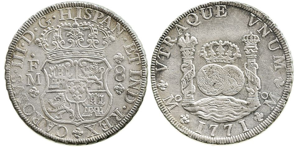 Mexico City, Mexico, pillar 8 reales, Charles III, 1771FM.