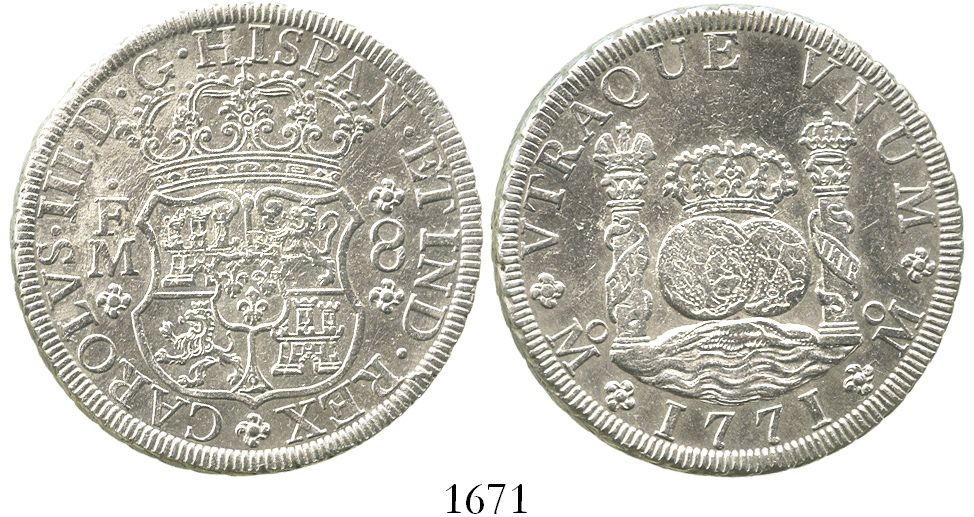 Mexico City, Mexico, pillar 8 reales, Charles III, 1771FM.