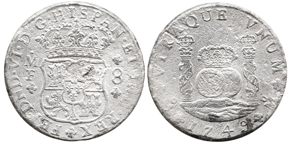 Mexico City, Mexico, pillar 8 reales, Ferdinand VI, 1749MF.