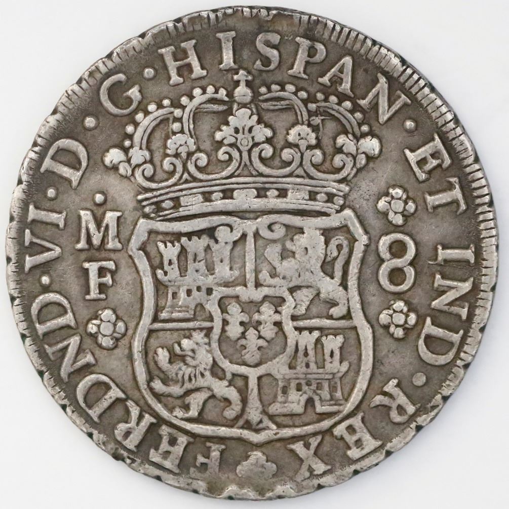 Mexico City, Mexico, pillar 8 reales, Ferdinand VI, 1750MF. KM-140.1; CT-325. 26.93 grams. Nicely toned XF, area of rim weakness (typical).