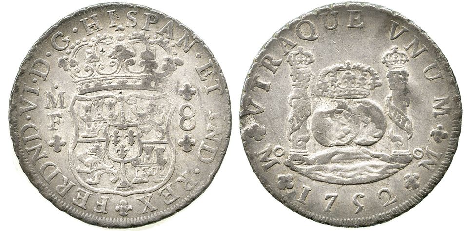 Mexico City, Mexico, pillar 8 reales, Ferdinand VI, 1752MF.