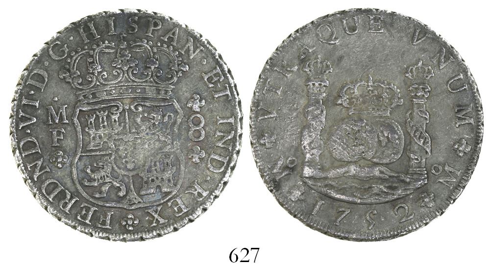 Mexico City, Mexico, pillar 8 reales, Ferdinand VI, 1752MF.