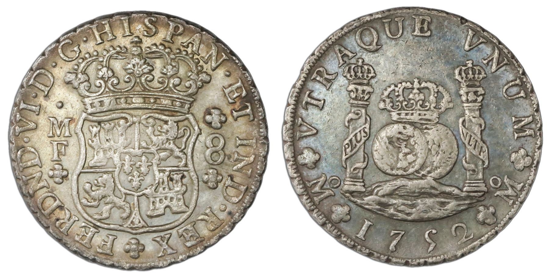 Mexico City, Mexico, pillar 8 reales, Ferdinand VI, 1752MF.