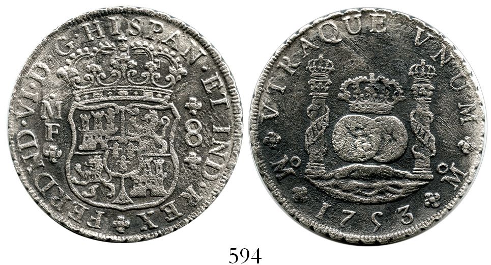 Mexico City, Mexico, pillar 8 reales, Ferdinand VI, 1753/2MF.