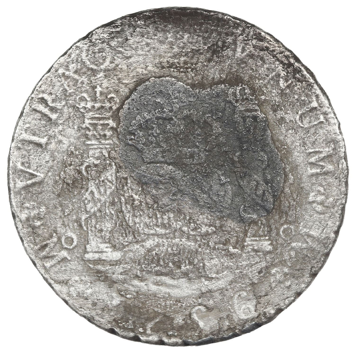 Mexico City, Mexico, pillar 8 reales, Ferdinand VI, 1756 MM. KM-104.2; Cal-491; Yonaka-M8.56. 22.42 grams. Significantly corroded with dark centers though a fair amount of detail remains visible including a full date. With original (generic) certificate from the salvor. Recovered from: La Auguste, sunk in 1761 off Nova Scotia, Canada